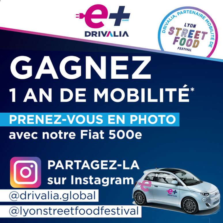- Publiez la photo sur votre compte Instagram en taguant les comptes @drivalia.global et @lyonstreetfoodfestival